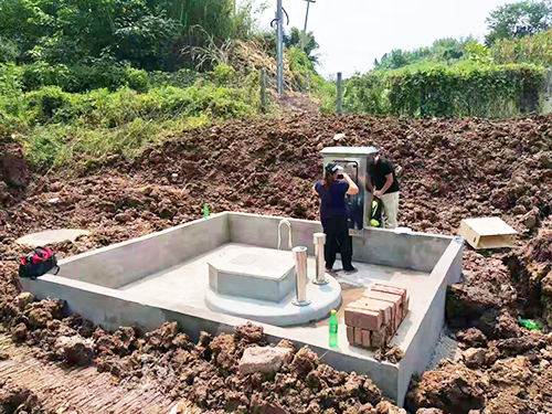 明珠泵業(yè)優(yōu)質(zhì)小型泵站實(shí)地安裝現場(chǎng),應用資中農村污水收集提升!