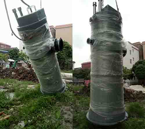 我司優(yōu)質(zhì)玻璃鋼一體化預制泵站發(fā)貨廣東佛山南莊格羅村實(shí)地安裝現場(chǎng)!